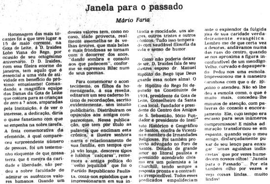 "Janela para o Passado", artigo publicado por A Tribuna em 25/5/1978, página 21, e republicado em 30/5/1978, página 21: