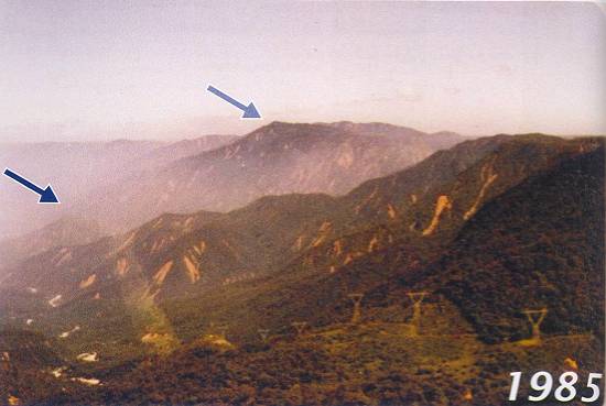 gasosos na atmosfera de Cubatão. A conseqüência mais visível foi a degradação da vegetação da Serra do Mar próxima às