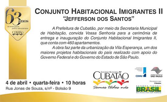 Convite emitido pela Prefeitura para a inauguração do conjunto habitacional