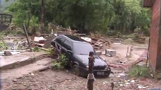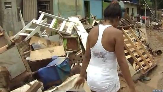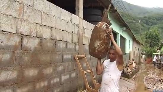 Fotogramas do vídeo incluído na matéria acima, da TV Tribuna/portal G1, incluem vista aérea, o sistema de alerta, o padre Carlos Miranda e sua capela e diversos moradores nos trabalhos após as enchentes do início de 2013: