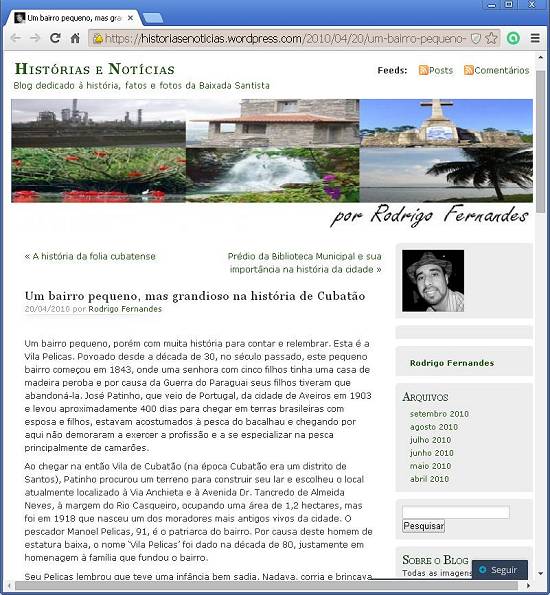 Matéria publicada no blogue História e Notícias, por Rodrigo Fernandes, em 20