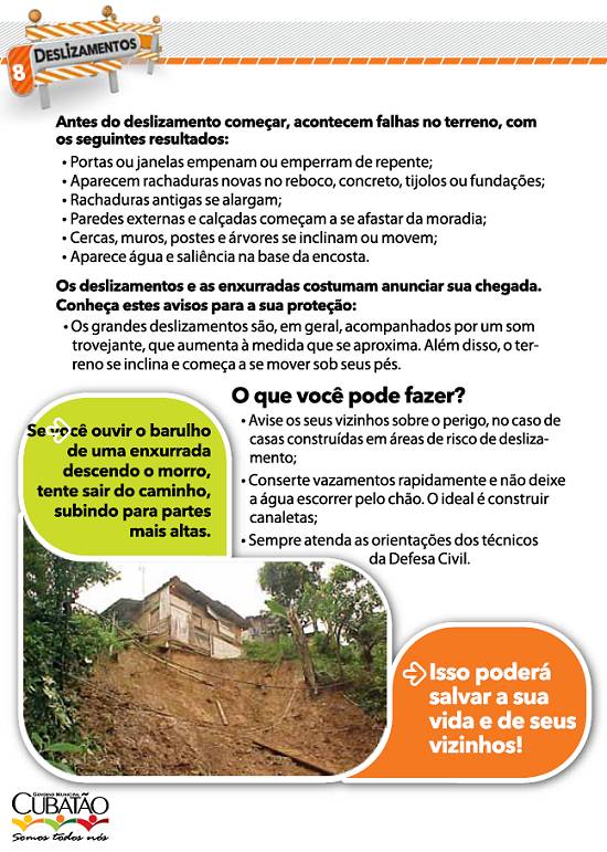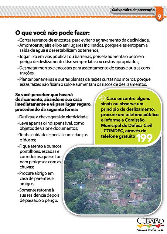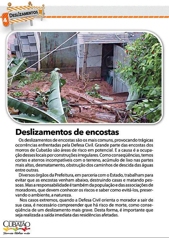 cartilha produzida para a Comdec pela Secretaria de Comunicação Social da Prefeitura de Cubatão, em novembro de 2010 |