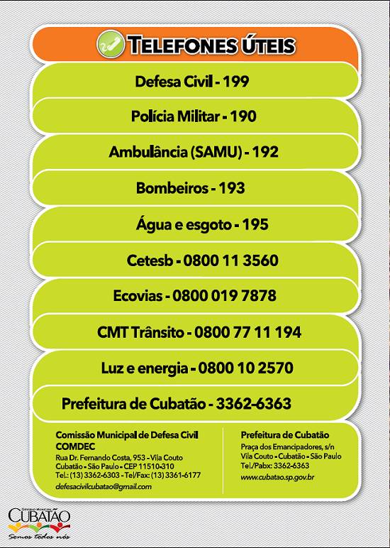 deslizamentos nas encostas de morros, inundações e outros acidentes, a Prefeitura de Cubatão distribuiu, através da