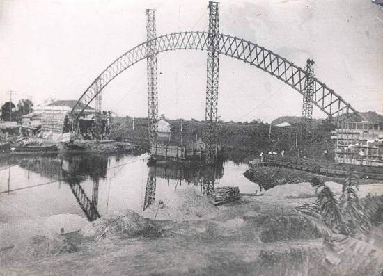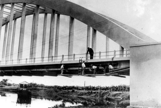 Em 1936, uma ponte provisória estava sendo construída: