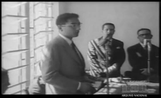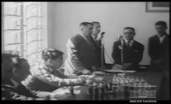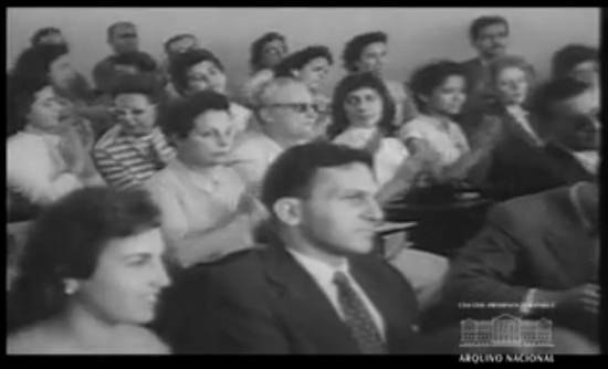 Título: Cinejornal Informativo n. 19/57 (1957). Resumo: PRESIDÊNCIA DA REPÚBLICA. Audiências no Catete [no Rio de Janeiro: presidente Juscelino Kubitschek recebe representantes de entidades culturais, científicas, beneficentes, artísticas e estudantis]. Entrega de credenciais [do Embaixador da Colômbia ao presidente, com a presença do ministro José Carlos de Macedo Soares]. Visita dos "Pan Am Jets" [ao presidente e à primeira-dama Sara Kubitschek]. ATOS DIVERSOS. Ministro interino da Justiça [José Carlos de Macedo Soares, é empossado pelo ministro Nereu Ramos]. Homenageado o ministro Nereu Ramos [com banquete oferecido pelo embaixador da Nicarágua]. Centenário de José Veríssimo [comemorado na Academia Brasileira de Letras]. PETRÓLEO. Mais um aniversário da Refinaria Presidente Bernardes, em Cubatão, SP. JOGOS INFANTIS. Competição de saúde e beleza da juventude [presentes o presidente Juscelino Kubitschek e o prefeito do Rio de Janeiro Negrão de Lima].