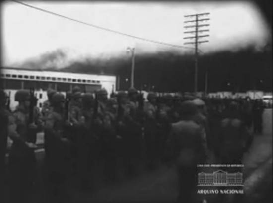 Título: Cinejornal Informativo n. 13/58 (1958). Resumo: FERROVIAS DO SUL. Ourinhos recebe locomotivas. OBRAS NO NORDESTE. O governo cumpre o programa do Encontro dos Bispos [inaugurando obras na cidade de Açú, Rio Grande do Norte]. A LUTA PELO PETRÓLEO. Visita do general Lott à Refinaria Presidente Bernardes [em Cubatão], visita o II Batalhão de Cavalaria, [em Petrópolis]. DIA DO SOLDADO. Comemoração junto ao Panteão de Caxias [presidente Juscelino condecora personalidades]. [SEM SOM] Clique >>aqui<< ou na imagem acima para obter o vídeo em formato MP4 (7'43", 16,9 MB).