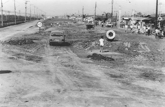 trecho então conhecido como Via Bandeirantes, entre a ferrovia e o bairro Vila Nova Cubatão: