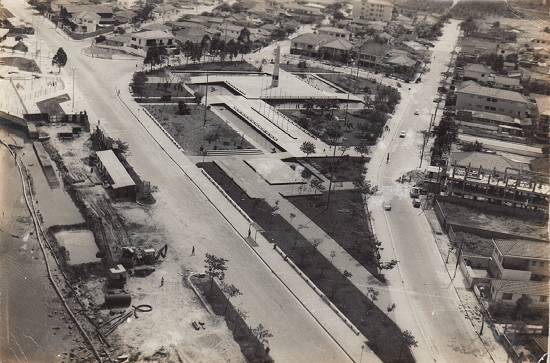 Na mesma época, foi feita esta foto da Praça Independência, para divulgação durante as festividades do aniversário de Cubatão do ano seguinte, em 9 de abril de 1977: