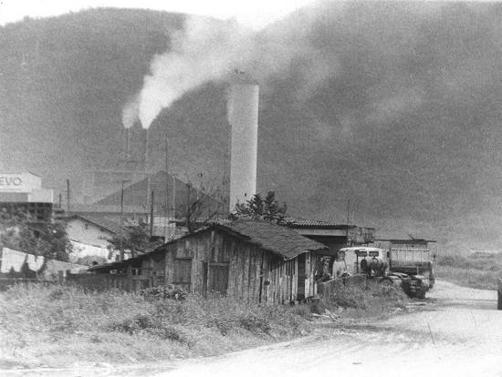 meio do pólo industrial, e justamente na época de maior descontrole da poluição provocada pelas indústrias. Era a Vila Parisi, na área conhecida
