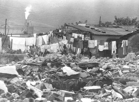 Vila Parisi tinha suas casas encostadas nas instalações fabris poluidoras, como se vê