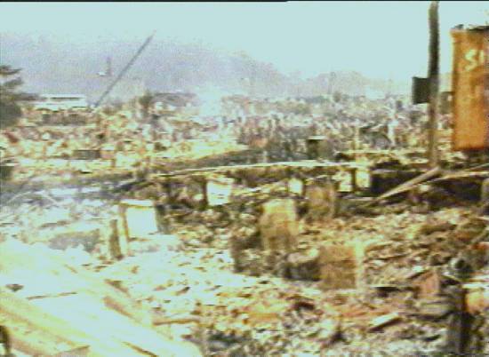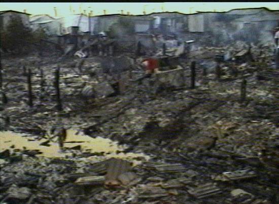 Vila Socó, destruída pelas chamas com a morte de cerca de cem pessoas, em 24/2/1984. Vinte anos depois, a TV Tribuna lembrou o episódio em seu Jornal da Tribuna 2ª Edição (em 24/2/2004, às 19h05), com vídeos da época: