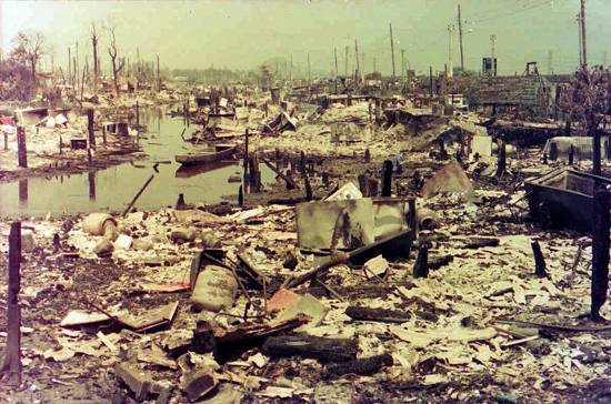 Vila Socó, destruída pelas chamas com a morte de cerca de cem pessoas, em 24/2/1984: