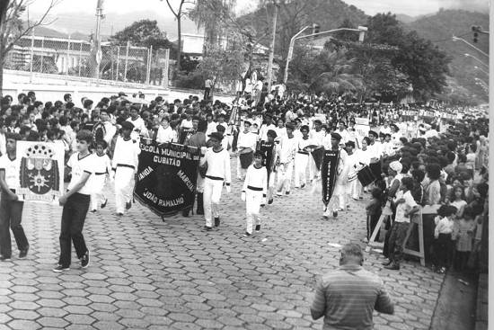 | Estas quatro fotos são de um desfile estudantil pela Avenida