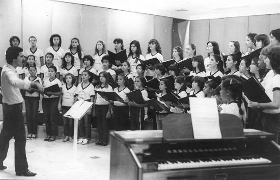 Esta apresentação do Coral do Conservatório Musical situado no bairro ocorreu durante um