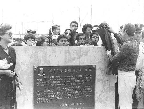 "Neste local existiu uma indústria que deu origem à expansão urbana de Cubatão. Preservando a memória deste núcleo representativo para a nossa comunidade, entregamos hoje esta área para que o povo de Cubatão desfrute de verdadeiros momentos de lazer, através de atividades culturais, esportivas e recreativas".