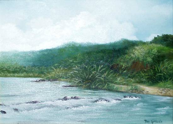 E ainda o rio Perequê, também numa tela assinada por Tina Gualberto...