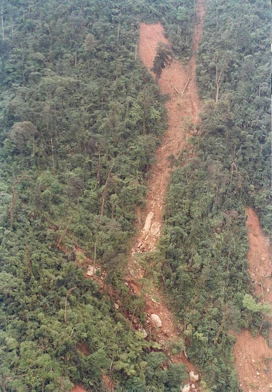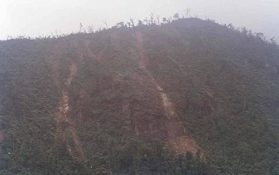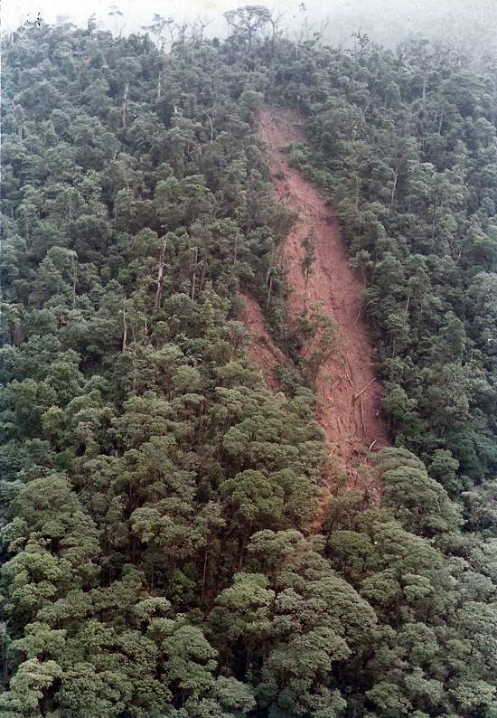 Um dos efeitos da poluição intensa causada pelas atividades industriais de Cubatão sobre as encostas da Serra do Mar foi o desaparecimento de uma parte da cobertura vegetal, facilitando a ocorrência de deslizamentos de terra no período de chuvas fortes, como as de 1985: