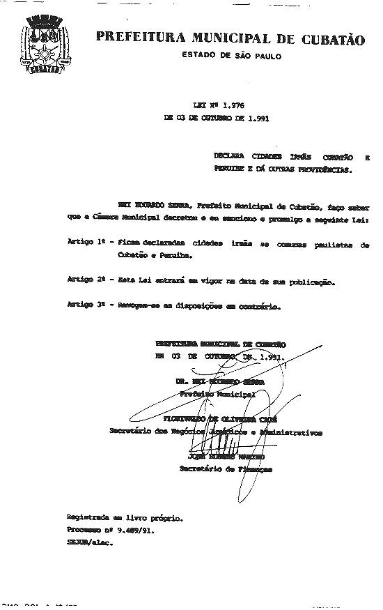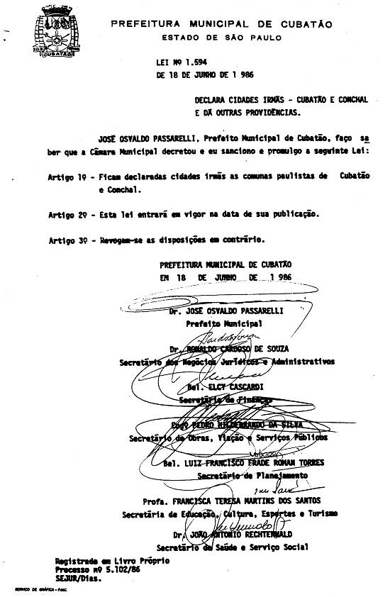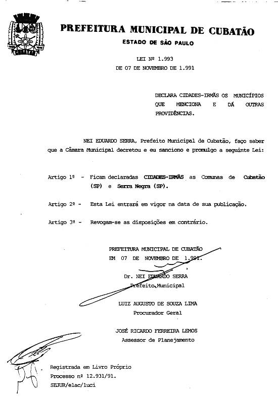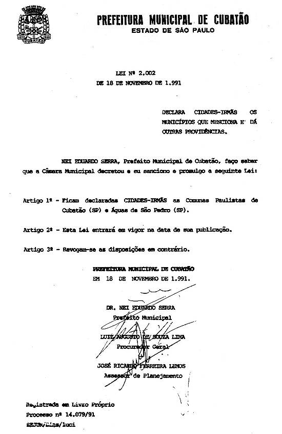 São estas as cidades-irmãs de Cubatão, com as leis cubatenses de