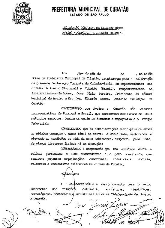 Acordo de Geminação entre Cubatão e