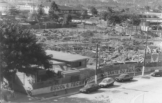 Indústria (Senai) na Praça da Bíblia, na Vila Couto (Centro de Cubatão, próximo ao Paço Municipal) é visto nestas imagens