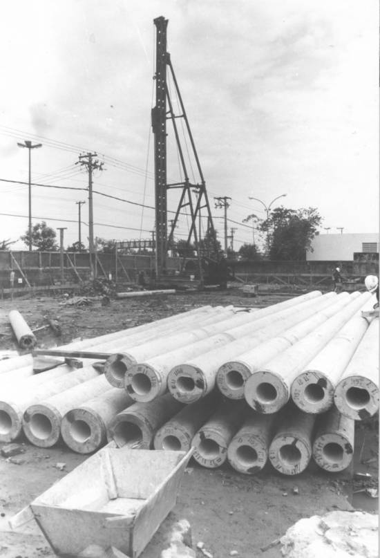1986 e mostram a área onde seria erguido o prédio do teatro, na confluência das avenidas Nove de Abril e Henry Borden: