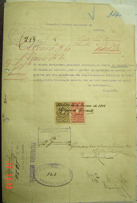 janeiro de 1916, um requerimento à Prefeitura de Santos, assinado por E. R. Merôe, anunciava o desejo de construção no então bairro de Cubatão, de