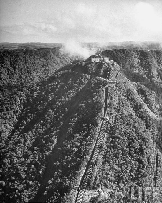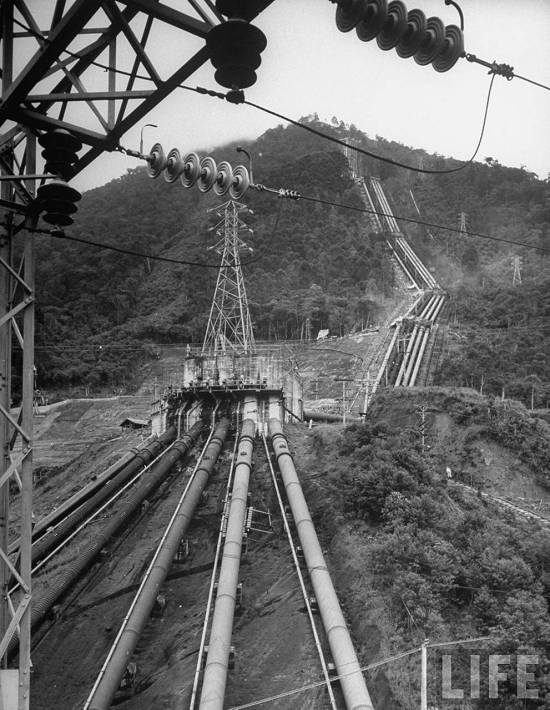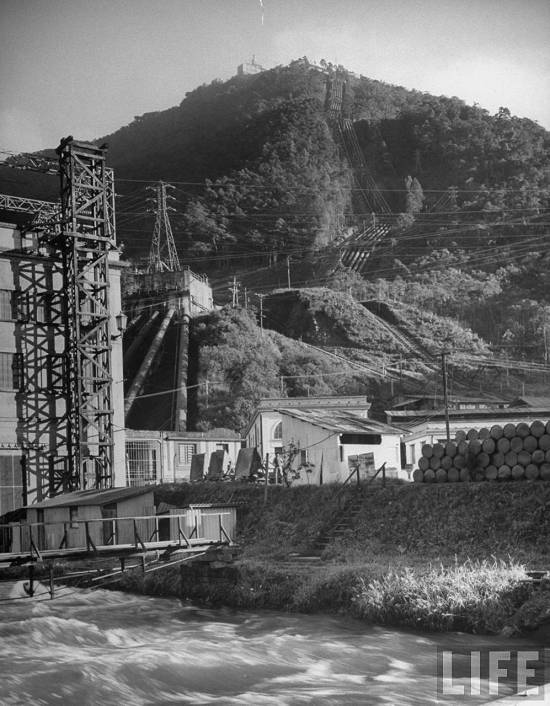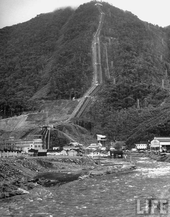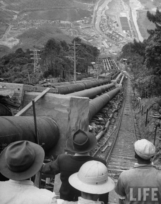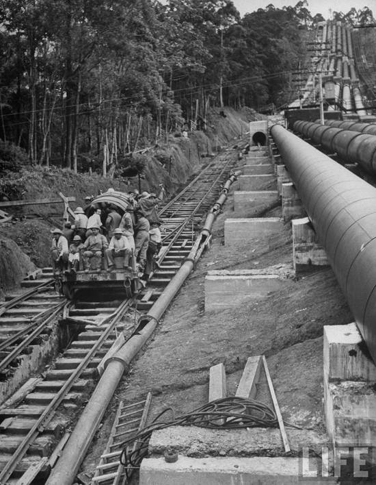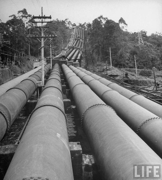 "Location: Sao Paulo, Brazil -Pipes running from power plant to water castle on mountain"