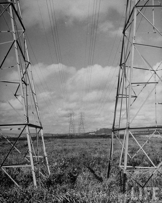 "Location: Sao Paulo, Brazil - Power lines running into city from power plant"