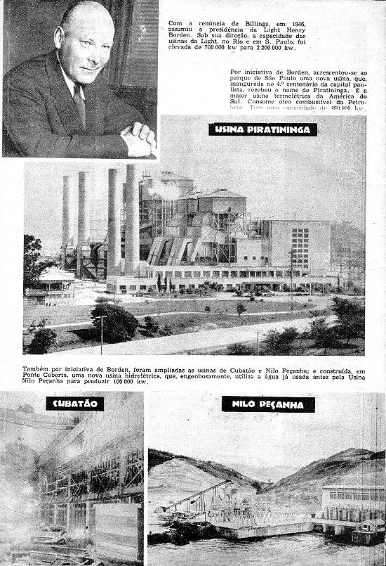 Também por iniciativa de Borden, foram ampliadas as usinas de Cubatão e Nilo Peçanha,
