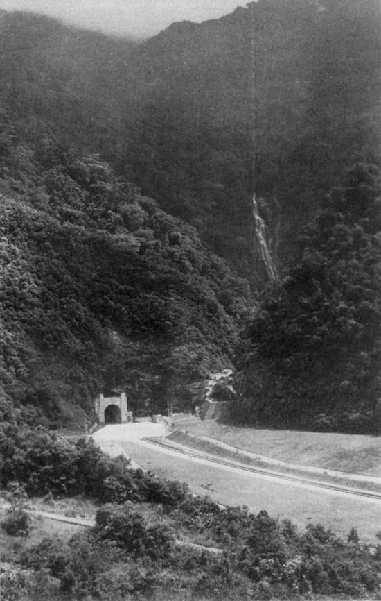Entrada da Usina Subterrânea - incrustada na escarpa da Serra do Mar e emoldurada pela Mata Atlântica. Capacidade geradora da Usina - 390.000 kW