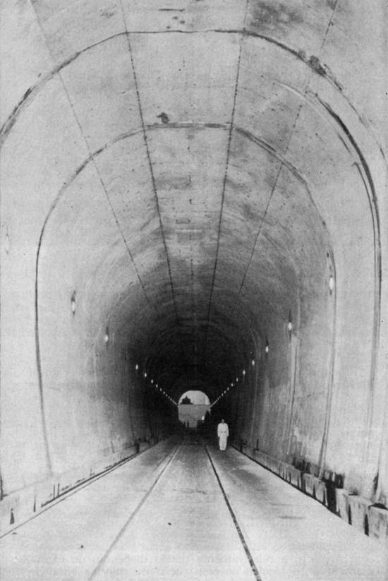 Túnel de entrada da Secção Subterrânea de Cubatão, vendo-se ao fundo pequeno trecho da caverna das máquinas