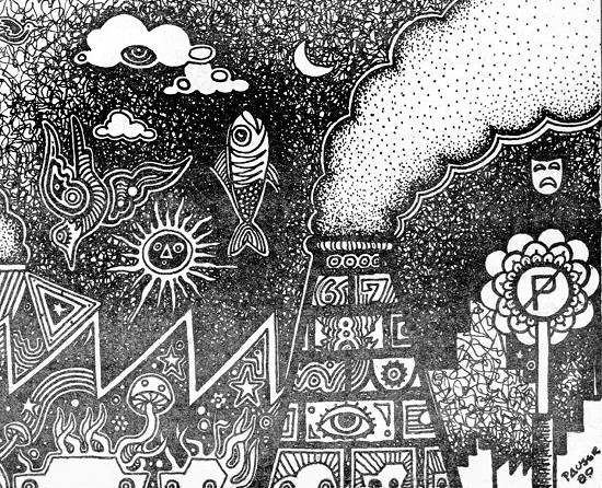 mar, cercada por três das 24 indústrias de Cubatão. Um instrumento medidor de poluição, instalado pelas autoridades, quebrou-se sob a intensidade da