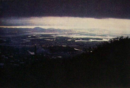 Cubatão. Trata-se de uma chuva ácida, composta de anidrido sulfuroso. Em contato com a pele, a chuva arde, queima, e por isso o povo diz que ela
