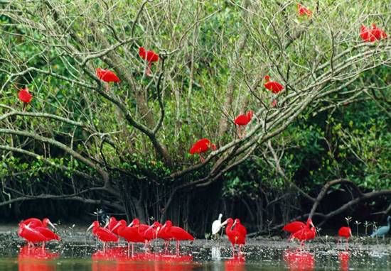 O guará vermelho é uma das aves mais espetaculares do mundo, possuindo plumagem