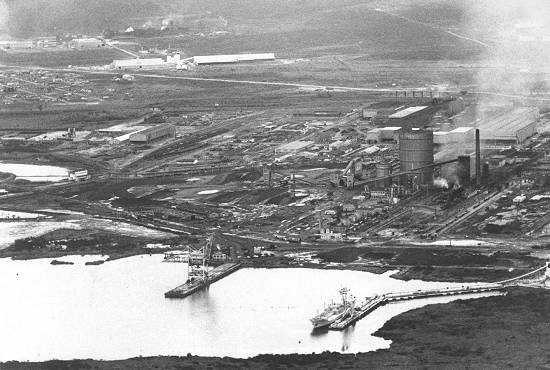 O porto da indústria: em primeiro plano, os terminais marítimos da Cosipa e da Ultrafértil,