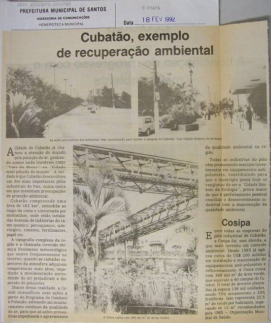 As ações preventivas das indústrias vêm contribuindo para mudar a imagem de Cubatão, hoje Cidade