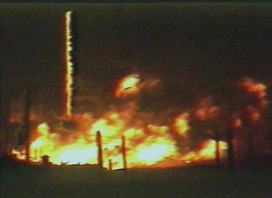 O incêndio em Vila Socó, em fotograma de vídeo da época