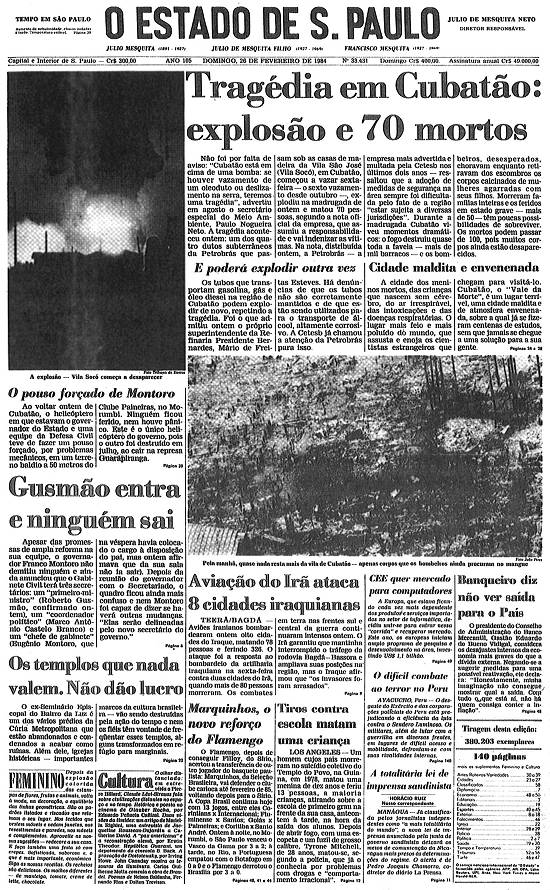 Imagem: reprodução da primeira página de O Estado de S.Paulo de 26/2/1984