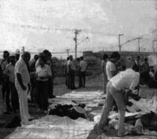 Cobertos por um lençol, foram colocados numa sala, para poupar do choque o governador Franco Montoro, que veio à
