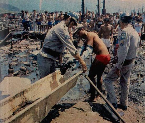 Naquele dia, os bombeiros passaram a jogar cal viva nos escombros e no mangue onde os barracos haviam sido construídos sobre palafitas, sepultando para sempre os cadáveres que provavelmente ainda
