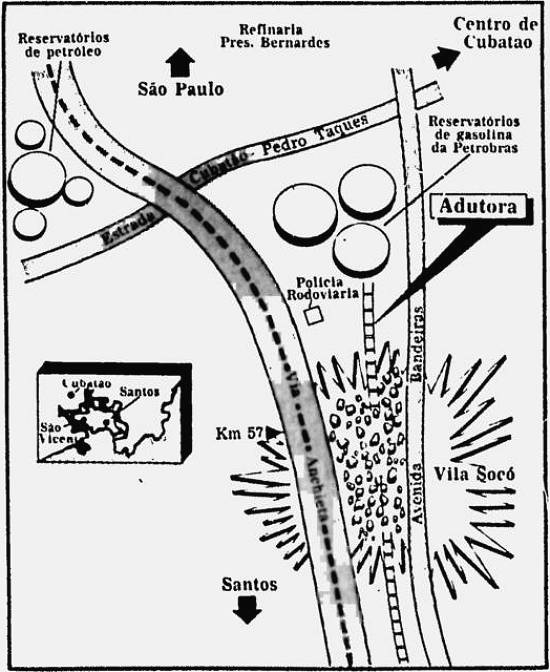 favela de Vila Socó, no Município de Cubatão. O presidente da Petrobrás, Shigeaki Ueki, abriu, também, um inquérito administrativo interno na empresa para apurar que tipo de falha - se de planejamento, manutenção, operação ou outra - foi a