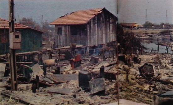 Em Cubatão, a favela da Vila São José, um imenso e desordenado agrupamento de barracos, entre a Via Anchieta e a refinaria da Petrobrás, plantada sobre os dutos de combustível desta empresa, foi
