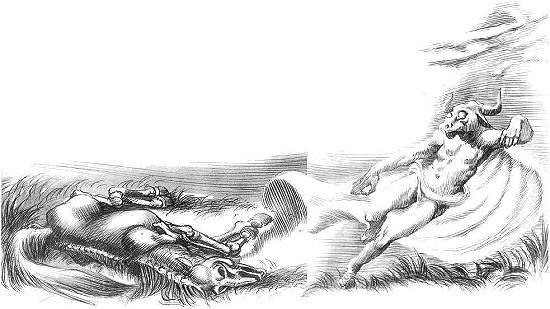 Iberè foi quem conseguiu explicar o mistério, não sem alguma dificuldade. Contou ele que estavam passando perto de um brejo quando surgiu um monstro