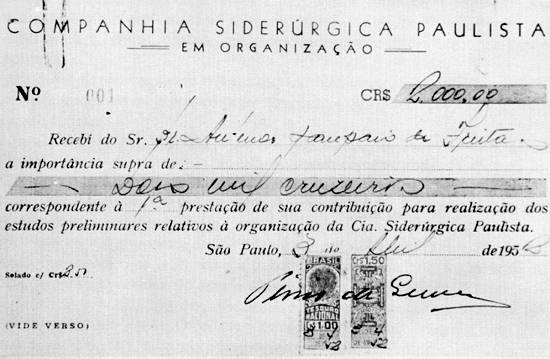 mais de 180 assinaturas entre colegas, firmas comerciais e escritórios de engenharia, contribuindo cada um com Cr$ 8 mil.
