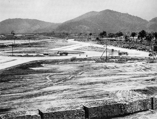 As obras de terraplenagem, iniciadas em 1958, continuaram a ser executadas pelas
