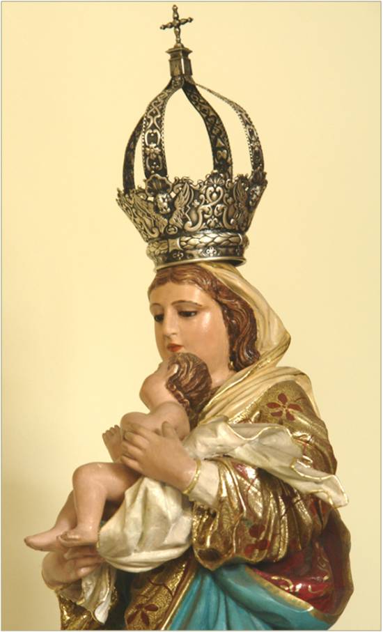 imagem de Nossa Senhora da Lapa, sua devoção, sua dádiva e comprometimento em continuar com as missas cantadas a Virgem Santíssima.