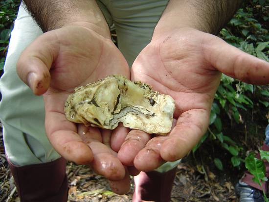 Detalhe das conchas encontradas em abundância no sambaqui nº 1