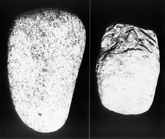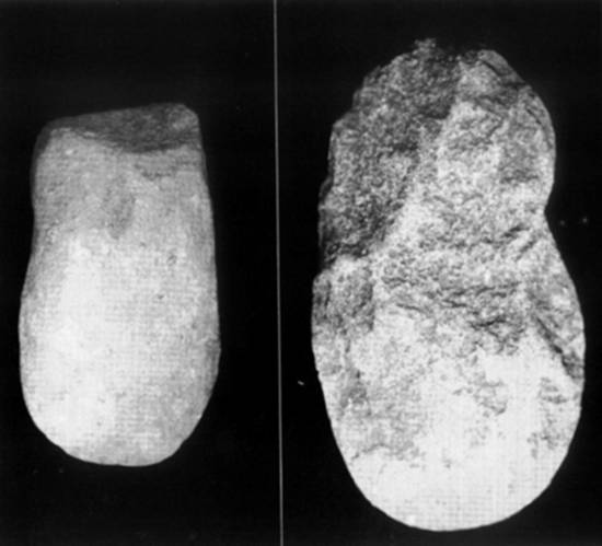 Figura 5 - Suportes, tipo "quebra-coquinhos". À esquerda, em gnaisse, a rocha se