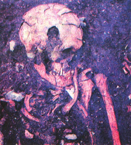Esqueletos misturados a utensílios foram encontrados...