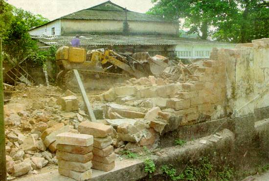 Trabalhadores destróem as casas que estão desocupadas